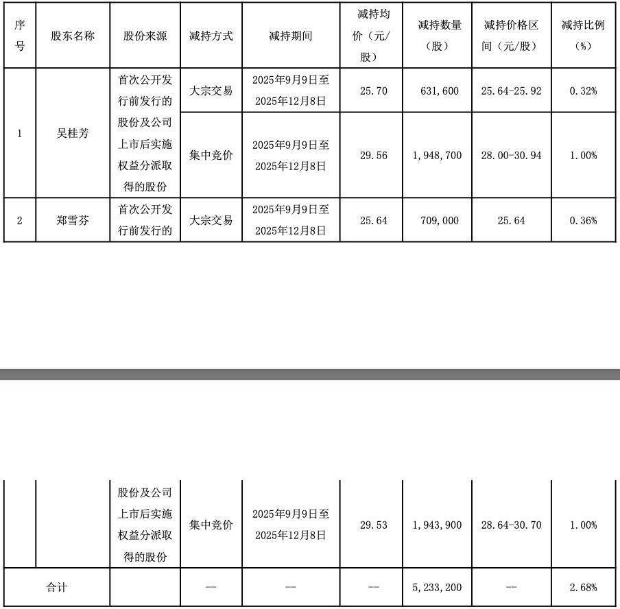 具体来看,持有公司股份6,094,960股(占公司总股本比例3.13%)的吴桂芳计划自本减持公告之日起15个交易日之后的3个月内通过集中竞价交易方式或大宗交易方式减持公司股份,减持公司股份数量合计不超过5,846,300股(占公司总股本的3.00%)。