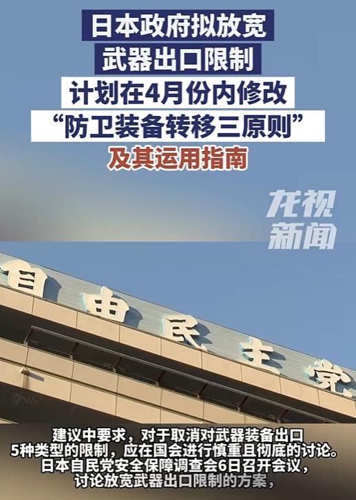 4月6日自民党安保调查会召开紧急会议,正式敲定放宽武器出口的方案,并计划在4月内完成对“防卫装备转移三原则”及其运用指南的修改,为武器出口合法化彻底“松绑”。